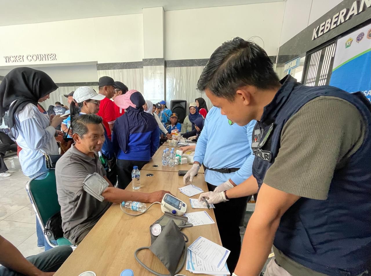 Terminal Head TPK Kendari, Herryanto mengecek kesehatannya dalam rangkaian Harhubnas 2025 di Terminal Tipe A Puuwatu Kota Kendari.