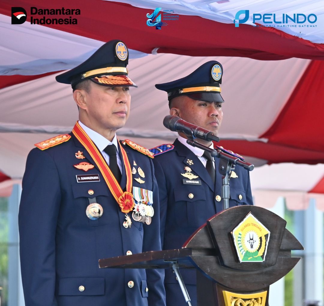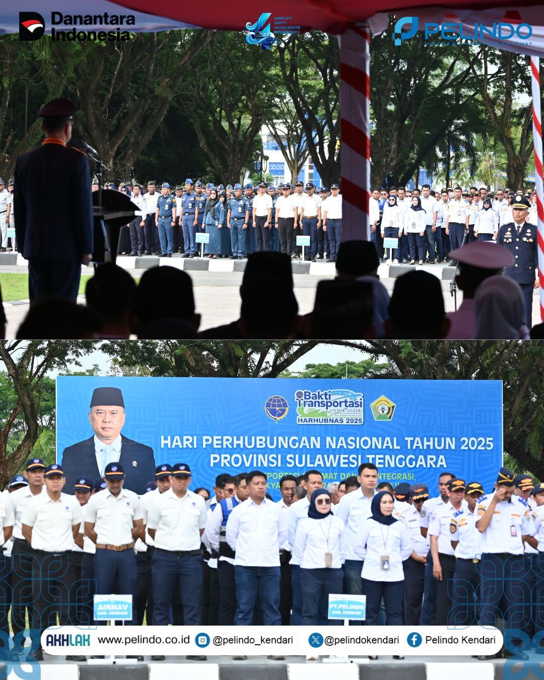 Pimpinan Pelindo Kendari, Herryanto bersama insan perhubungan di Sulawesi Tenggara diantaranya Kepala KSOP Kendari, Capt Raman mengikuti upacara Peringatan Harhubnas 2025 di Kantor Gubernur Sulawesi Tenggara.