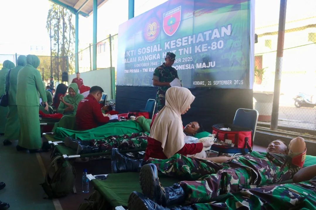 Kendari, Sulawesi Tenggara — Prajurit Kodim 1417/Kendari menunjukkan kepedulian sosialnya dengan berpartisipasi dalam kegiatan bakti sosial donor darah.
