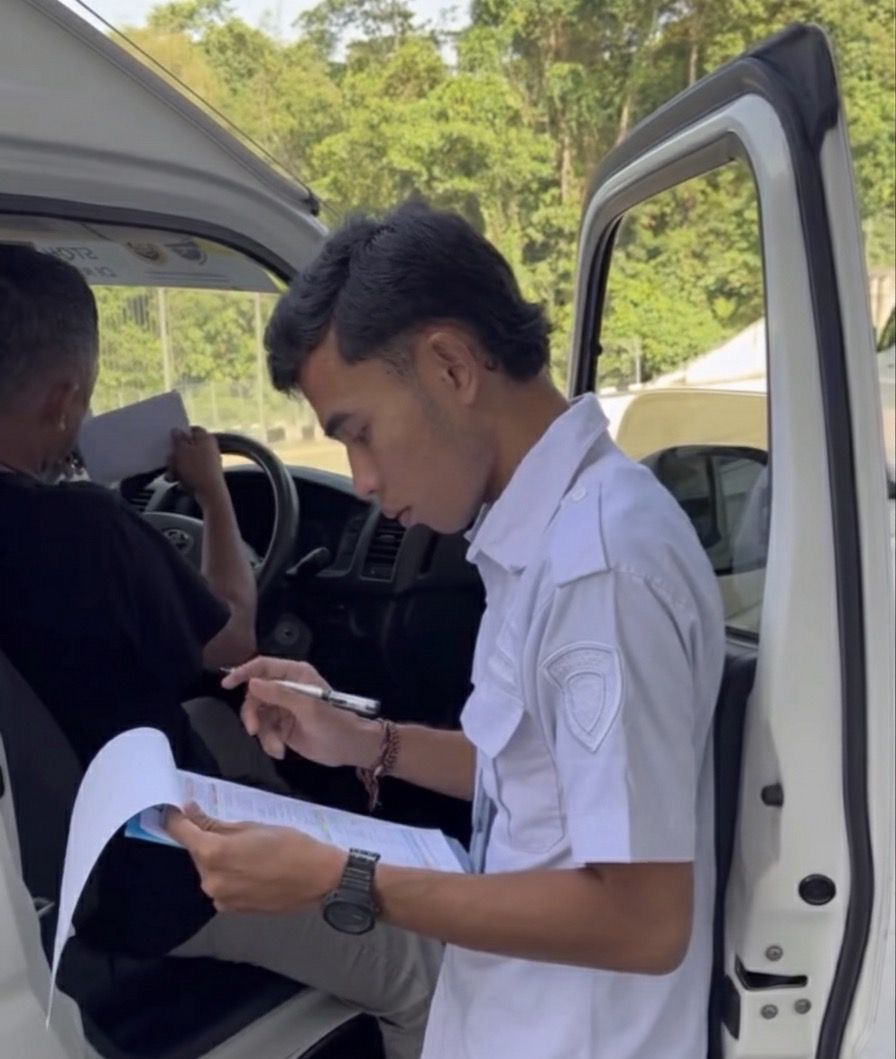 Selain itu, kelengkapan alat darurat juga diperiksa, seperti APAR (Alat Pemadam Api Ringan), alat pemukul kaca, dan dongkrak.
