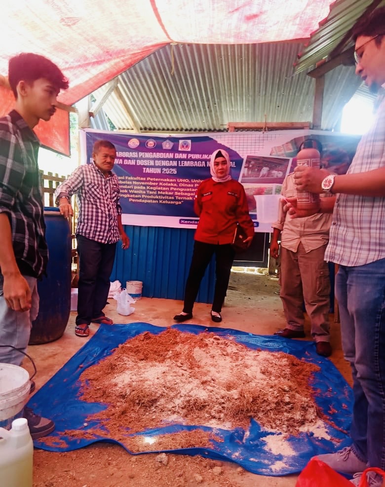Fakultas Peternakan Universitas Halu Oleo (UHO), Universitas Sembilan Belas November (USN) Kolaka, dan Dinas Pertanian (Distan) Kota Kendari bersinergi dalam kegiatan bertajuk “Penguatan Peran Kelompok Wanita Tani Mekar Sebagai Upaya Peningkatan Produktivitas Ternak dan Pendapatan Keluarga” di Kelurahan Anggoeya, Kecamatan Poasia, pada Sabtu (18/10/2025).