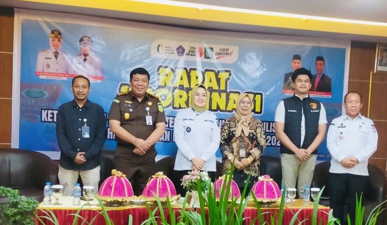 Kajari Kota Kendari, Ronal H.Bakara bersama Wali Kota Kendari, Siska Karina Imran foto bersama dalam Rakor Ketersediaan Pangan Kota Kendari, Rabu (29/10/2025). Foto : Agus Setiawan