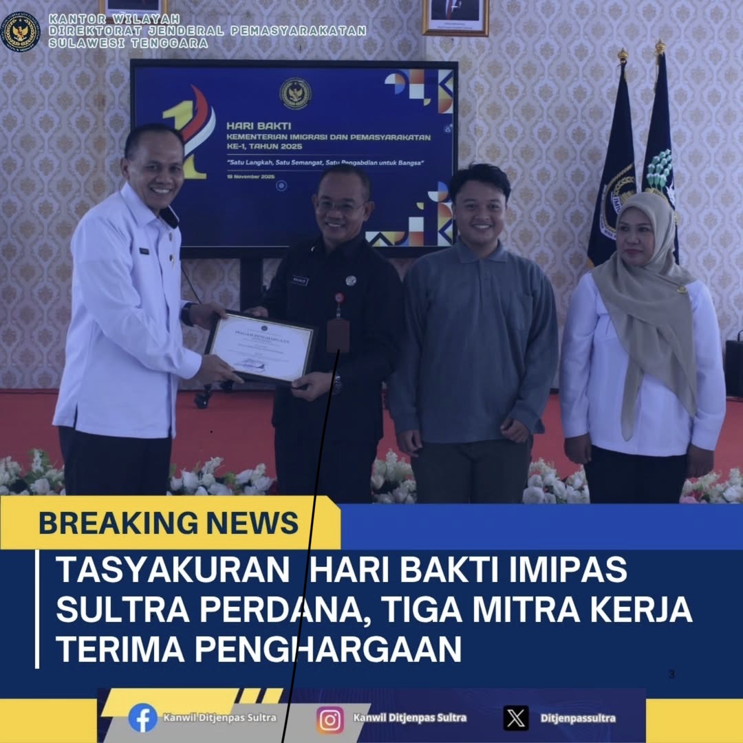 Selain momen penghargaan, tasyakuran ini juga menjadi refleksi atas perjalanan baru Ditjenpas dan Ditjenim Sultra yang kini berdiri di bawah kementerian masing-masing, terpisah dari Kementerian Hukum dan HAM.