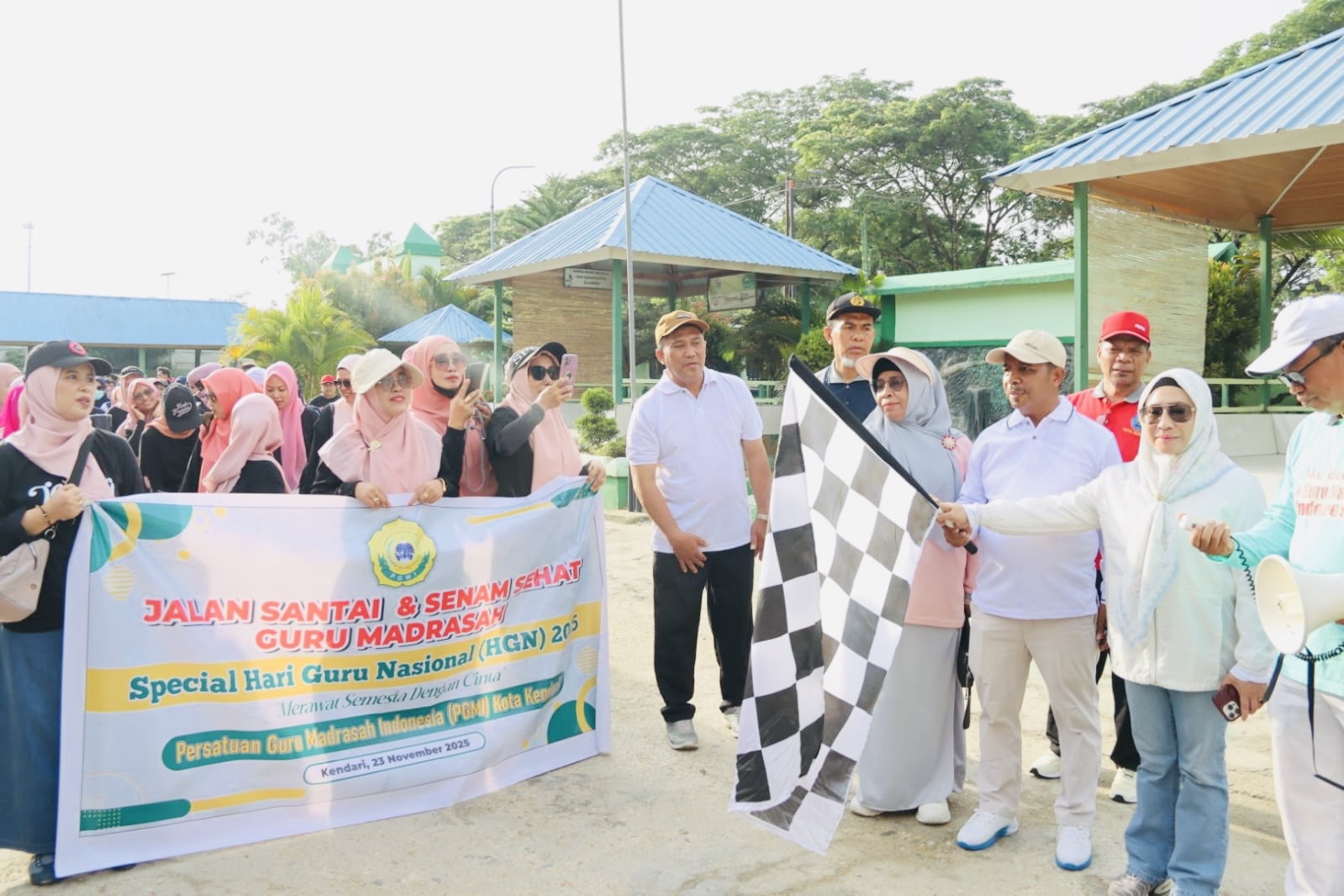 KENDARI – Kepala Kantor Wilayah (Kanwil) Kementerian Agama (Kemenag) Provinsi Sulawesi Tenggara, H. Mansur, secara resmi melepas peserta Jalan Santai dalam rangka memeriahkan Hari Guru Nasional (HGN) Tahun 2025, Minggu (23/11/2025).
