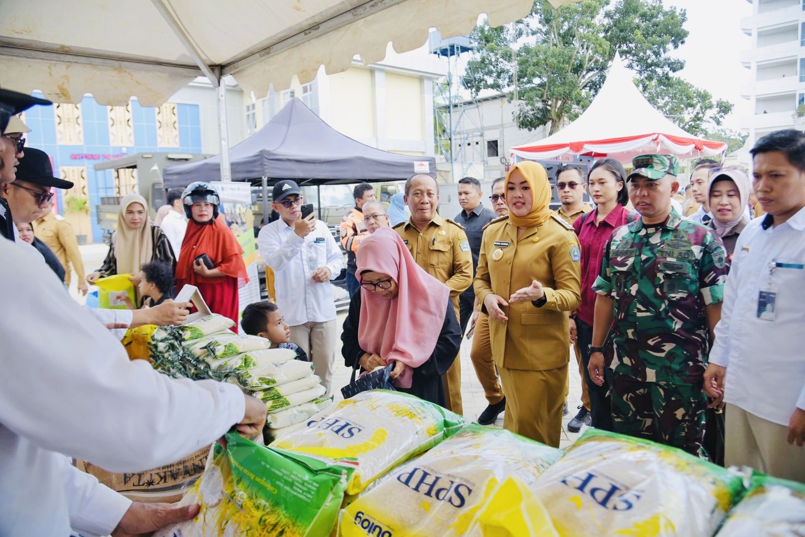 Wali Kota Kendari, Siska Karina Imran didampingi Kadis Ketapang Kota Kendari, Abdul Rauf meninjau pelaksanaan Gerakan Pangan Murah di Pelataran Balai Kota Kendari, beberapa waktu lalu.