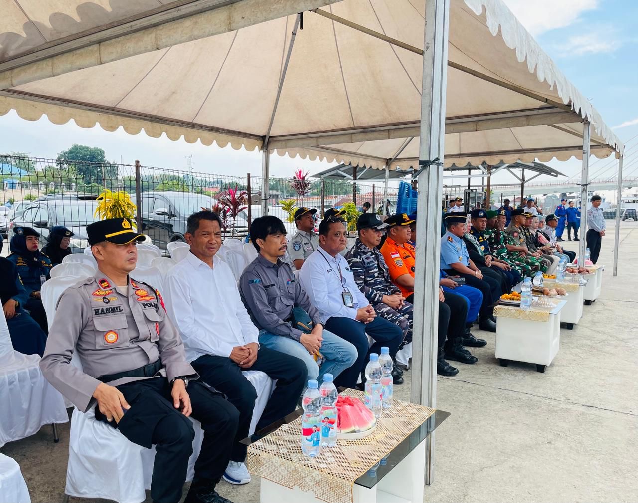 General Manager Pelindo Kendari, Herryanto mengikuti Apel Kesiapan Angkutan Laut Natal 2025 dan Tahun Baru 2026 di Dermaga Nusantara Pelabuhan Kendari, Kamis (18/12/2025). Foto : Agus Setiawan