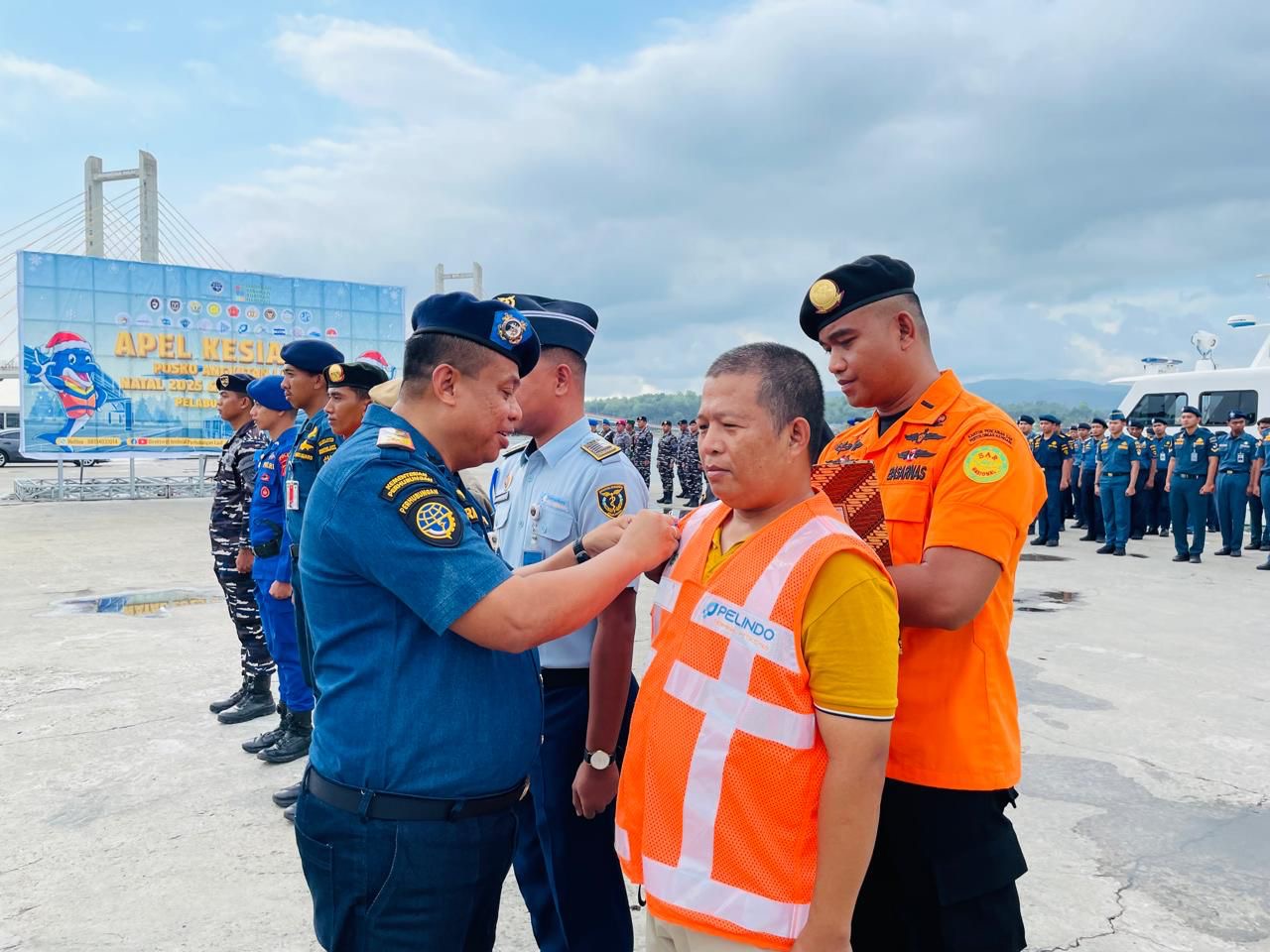Penyematan PIN siaga Nataru oleh KSOP Kendari kepada perwakilan Pelindo Kendari. Foto : Agus Setiawan
