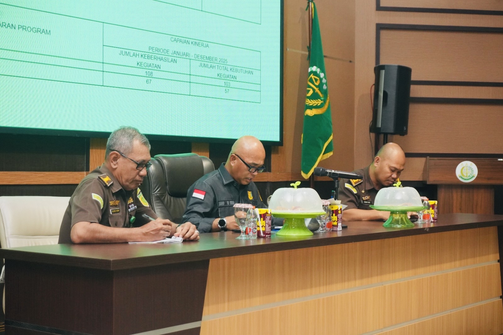 Asintel Kejati Sultra, Muhammad Ilham memimpin konferensi pers paparan kinerja Kejati Sultra sepanjang 2025 di Kota Kendari.